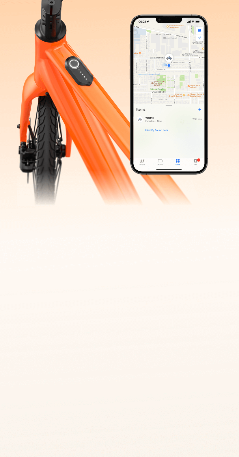 Velotric T1 ST works with the Find My app on your iOS device. Keep an eye on it anytime, right alongside the