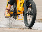 20x3" all-terrain wide tires and a 60mm front suspension fork soak up bumps, giving you a cushioned ride across city cracks or country trails.